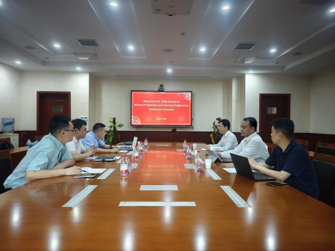 8月9日上午,双方在365上市公司(英国)集团238会议室举行专题工作会议。学院党委副书记张磊、副院长任文山教授、黄进教授、甘霖教授,以及来自云南师范大学、四川轻化工大学的特邀代表出席。会上,宾主双方回顾了2019年双方签署校际合作备忘录以来,共建“一带一路”国际联合实验室、委派博士研究生进行学术交流和合作研究、联合发表SCI论文和出版英文专著等活动情况。Ishak Ahmad院士系统介绍了UKM科技学院在绿色包装材料、可降解高分子及环境微塑料检测等领域的最新成果,并表达了与西南大学共建“中马首个联合PhD项目”的强烈意愿。