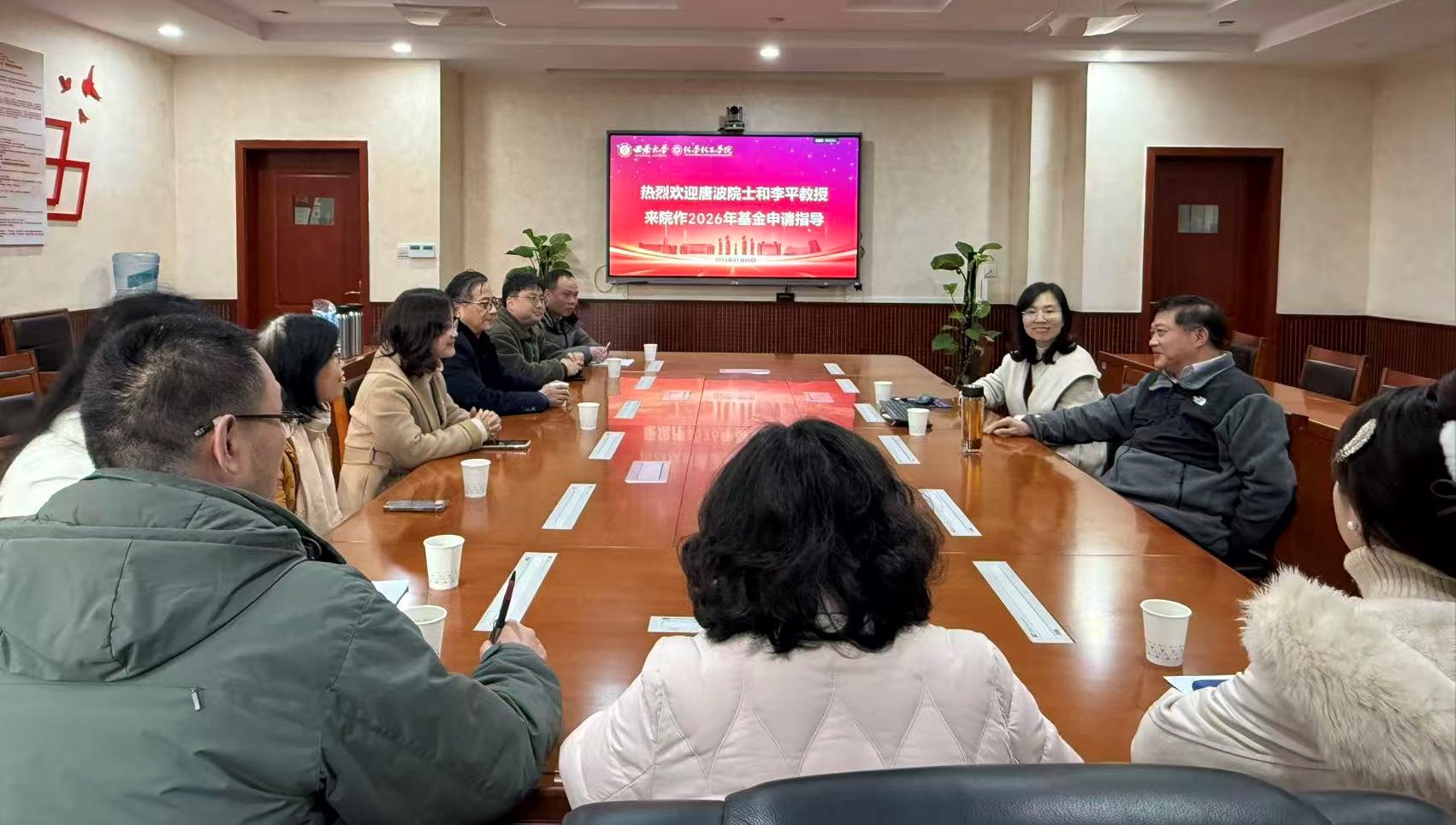 为持续提升学院教师国家自然科学基金项目申报质量,深化精细化指导成效,提高立项率,学院于2026年1月8日在学院238会议室举办了第三场高层次国自然基金申报指导会。本轮特邀崂山实验室唐波院士、西北师范大学李平教授两位资深专家莅临,为我院教师提供“面对面”的深度指导。学院10余位拟申报2026年度国自然基金项目的教师参与本次活动,现场交流深入,气氛热烈。