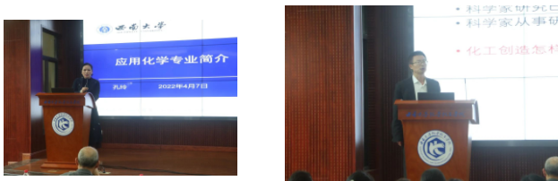本次专业分流动员会分为两个环节。第一个环节,应用化学系孔玲主任和化学工程与工艺系雷洪主任分别就两个专业的培养概况、学习要求、发展前景等做了详实生动的介绍,让同学们对即将到来的专业分流有了更清晰明确的认识。