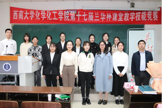 最后,评委老师们为获奖选手颁奖并合影留念,在各部门的齐心合作下,本届“兰华杯”课堂教学技能比赛圆满结束。