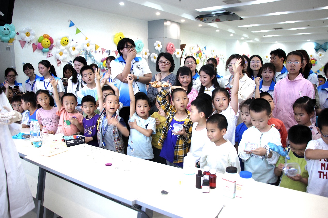 知之者不如好之者,好之者不如乐之者。在化学中感受乐趣,从乐趣中探索化学的奥秘。在此次活动中,小朋友和同学们不仅学到了许多化学知识,向劳动人员表达了感恩,更是用热情点亮了春色,将爱和善意的种子传播。
