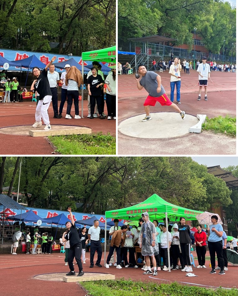 运动会上,学院教职工踊跃报名,参与了众多个人项目和集体项目的比赛。赛场上,场地湿滑,细雨飘零,给运动员们带来很大阻力,但他们个个摩拳擦掌、激情高涨。在个人比赛中,大家竭尽全力,互相帮助和鼓励,各展其能。集体项目中,大家团结协作、配合默契,将合力拧成一股绳,力争好成绩。赛场外,我院工会成员和学生志愿者认真做好服务工作,为运动员们加油鼓劲,保驾护航,整个赛场上洋溢着轻松欢快的气氛。为期两天的赛程,在运动员们的不懈努力下,我院教职工在运动会上取得较好的成绩。孔玲老师、陈静蓉老师分获女子铅球个人第三名和第四名,普航老师获女子个人跳远第五名,冉小琪老师获女子个人800米第五名,张娜老师获女子个人100米和个人400米第八名,王昊老师获男子个人铅球第八名。集体项目的接力赛我院团队获得第七名。