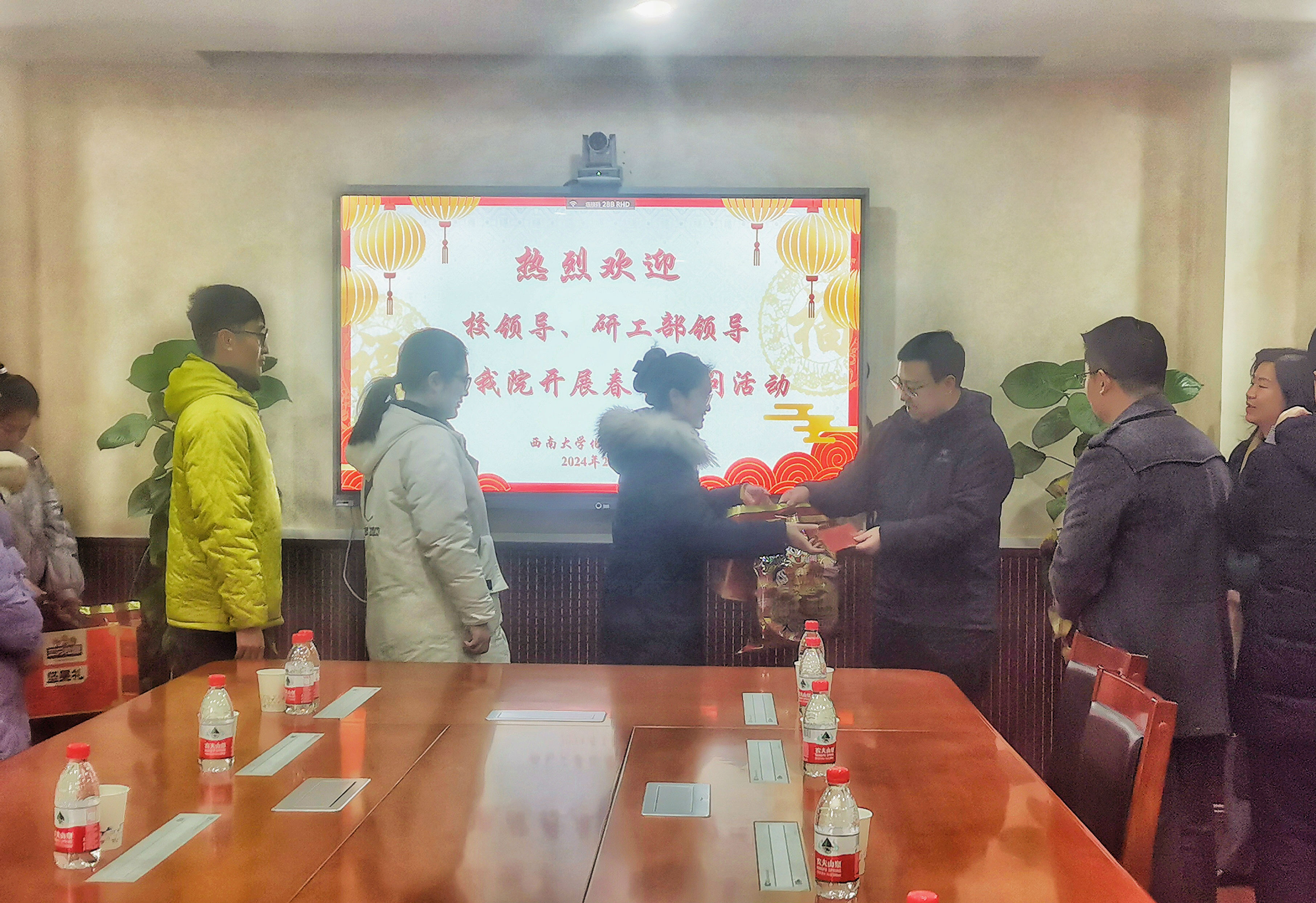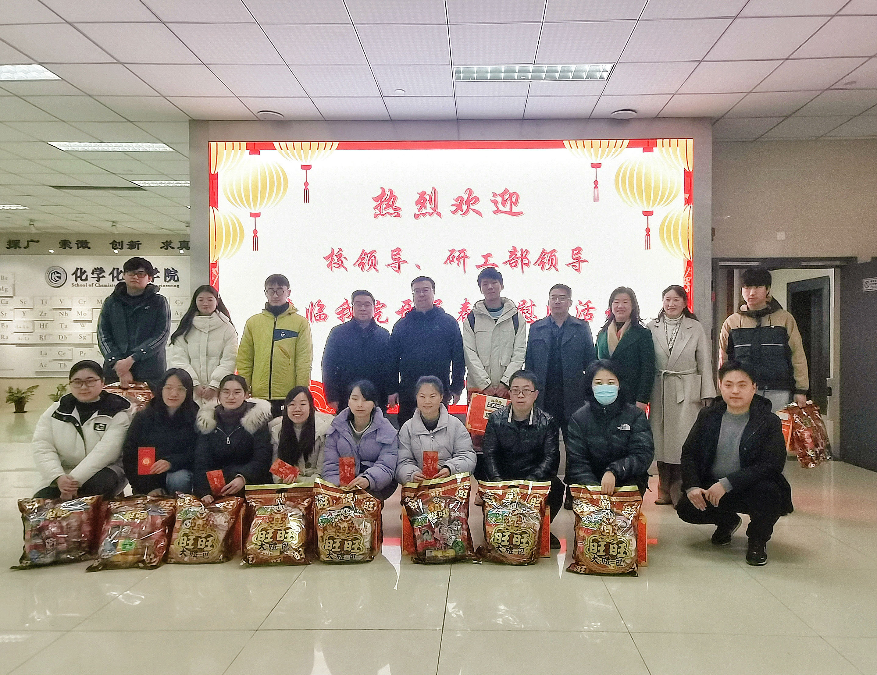 领导老师们十分关心学生假期里在学习生活上的需求,表示学校在宿舍、膳食、保卫等各方面为留校学生提供了必要保障。交流结束后,领导老师们亲自为留校学生发放了丰盛的新年大礼包和慰问红包,并纷纷送上暖心的新春祝福。