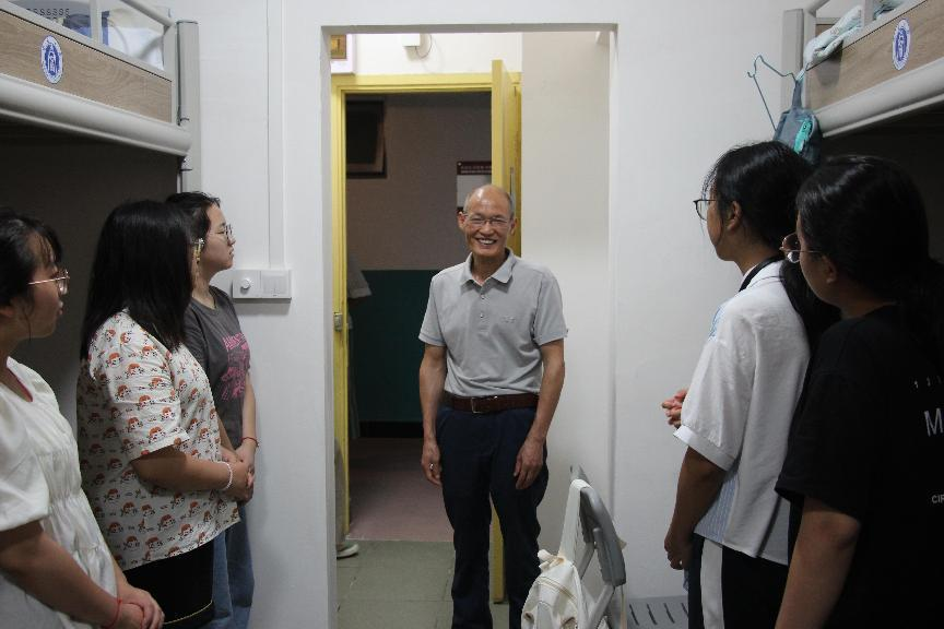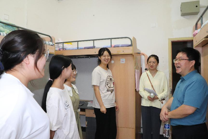 夏德全书记与同学们亲切交谈,询问了同学们入校后的生活情况,了解新生入学后遇到的困难和需求。夏书记和新生交谈甚欢,并且希望同学们能够认真学习,学有所成、学有所获、学有所用,以良好的状态迎接即将开始的大学生活。并且,夏书记非常关心新生的生活,亲自查看新生们的居住情况。