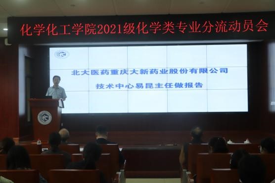 第二个环节,为帮助同学们明确学习目标,促进同学们尽早树立职业生涯规划意识以及更好地适应市场经济对人才的要求,学院邀请到民丰化工有限公司王增祥副总经理和北大医药重庆大新药业技术中心易昆主任到场做相关报告并与同学们亲切交流。两位嘉宾分别从自身求学经历、工作历程出发,和同学们分享了从事化工工作的心得体会和对化工行业的认识理解。