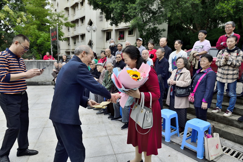 上午10:30左右,离退休老师们早早地来到禾丰楼附近,大家在楼前合影留念,学院领导向今年正值整生的退休教职工献上鲜花和慰问金。今年有两位老师正值90周岁,4位70周岁,5位60周岁。接着,李念兵院长向大家介绍了学院教学科研及学院建设情况,感谢退休教职工对学院的关心、理解和支持。然后,夏德全书记对离退休老师的相关政策做了解读,并表达了对退休老师的祝福,希望老同志们能老有所养、老有所学、老有所为、老有所乐。