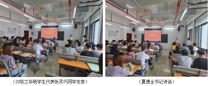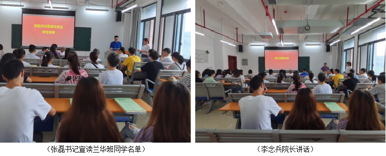 典礼上,张磊副书记宣读了2020级“兰华班”学生名单,对入选兰华班的同学表示了祝贺。李院长对学院举办“兰华创新班”的目的意义进行了说明,并表示, “兰华创新班”在我院拔尖创新人才培养方面发挥着十分重要的作用,同时对“兰华创新班”同学提出了希望和要求。甘霖老师发言中强调化学学科的重要性,化学学习对创新能力培养的重要作用,同时建议大家注意时间管理、自我管理,养成良好的学习和生活习惯。2017级“兰华班”优秀学生代表郑玲霁同学分享了自己大学期间的科研、学习经历,介绍了自己在“兰华班”的独特体验,给同学们提出了很多中肯的建议。2020级张灵巧同学代表全班同学做了表态发言,她表示全班同学定不忘初心,不负学院和老师的期望,努力学习,刻苦奋斗。最后,夏书记作了总结讲话,他强调“每一代人有每一代人的责任,每一代人有每一代人的担当”,希望2020级“兰华班”同学要明确目的,立志高远,不断提高自己的能力,学会坚持;要勤奋踏实,不懈追求,主动培养自己的能力,要充分利用学院的平台优势和兰华班的资源优势,完善自我。