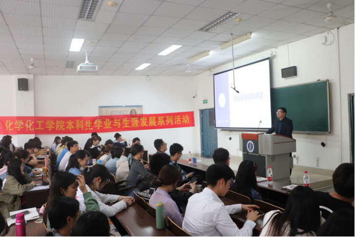 会议开幕式由2018级本科生杨耀主持,院长李念兵进行了致辞。李院长首先肯定了化院近几年在考研升学方面的成绩,同时分析了考研形势的严峻,希望同学们能够充分利用学院资源优势,在未来成功上岸。李院长也对同学们考取本校研究生表示欢迎,希望同学们再接再厉,勇攀高峰。