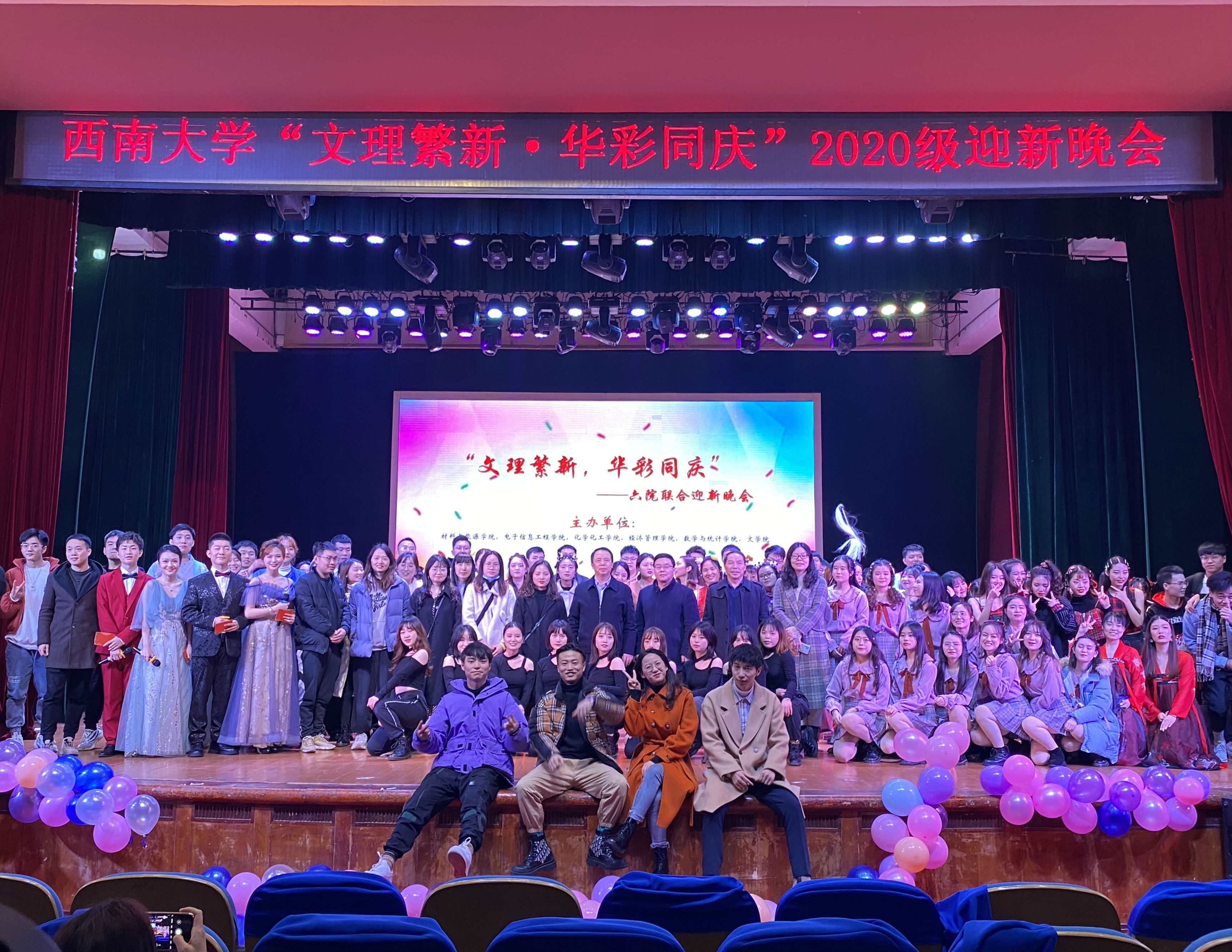 汇文理之菁华,聚六院之巧思,西南大学2020年“文理繁新·华彩同庆”六院研究生迎新晚会于12月12日晚19:00在光大礼堂隆重举行。此次迎新晚会由文学院、365上市公司(英国)集团、经济管理学院、数学与统计学院、材料与能源学院、电子信息工程学院共同筹办。出席本次迎新晚会的嘉宾有365上市公司(英国)集团院长李念兵、研究生辅导员杨思清、电子信息工程学院党委书记毕均明、文学院党委副书记陈玥、研究生辅导员凌飞、经济管理学院党委副书记田丽、研究生辅导员钱璐、数学与统计学院党委书记易遵尧、材料与能源学院党委副书记刘昭暾、团委书记帅丁祺。