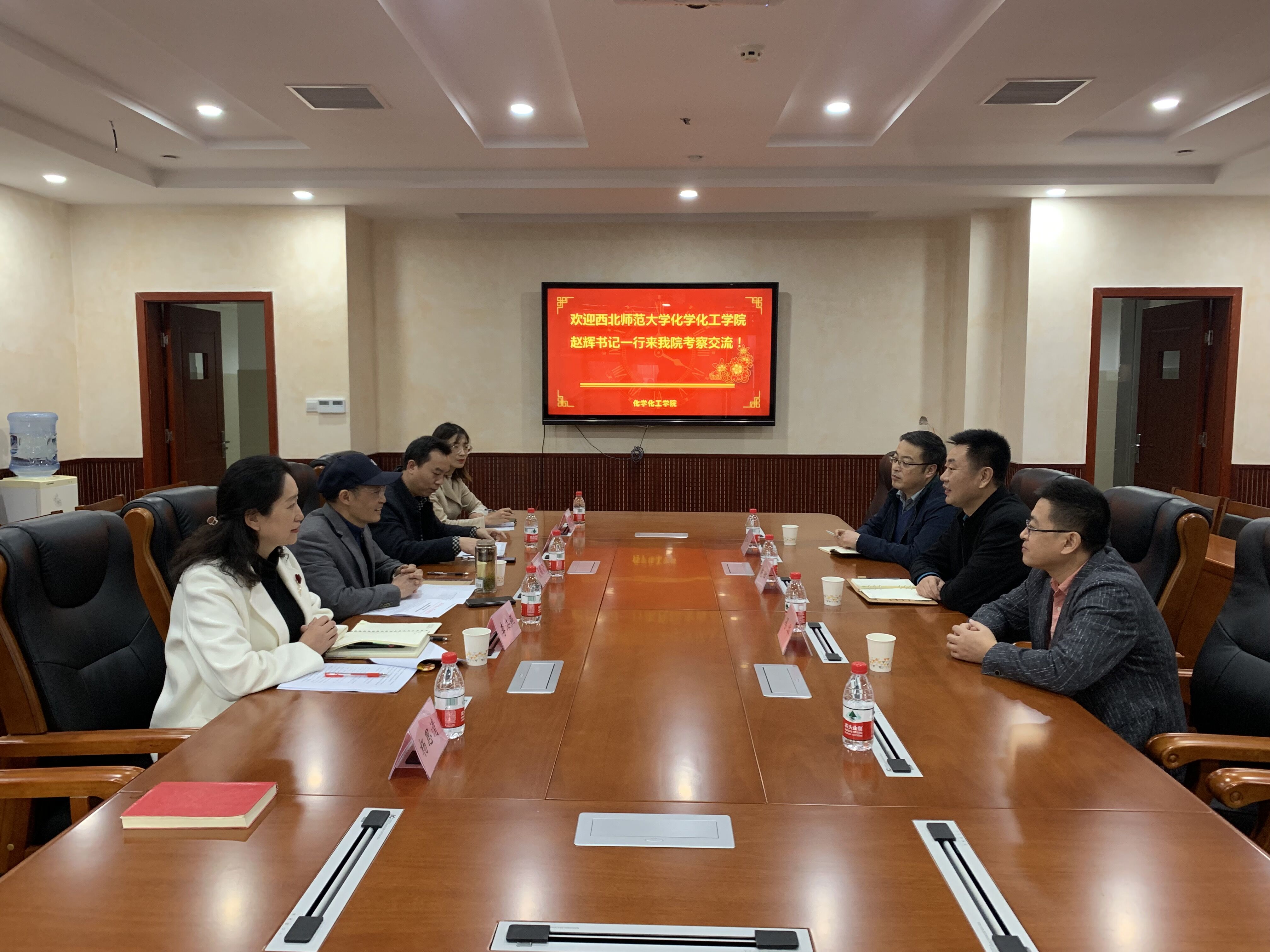 2020年11月18日上午,西北师范大学365上市公司(英国)集团党委书记赵辉、副院长薛中华、化工系主任冯华一行莅临我院考察交流。学院党委书记夏德全、党委副书记、纪委书记李海燕、副院长何荣幸、教学秘书张小芳、研究生辅导员杨思清出席了交流座谈会。