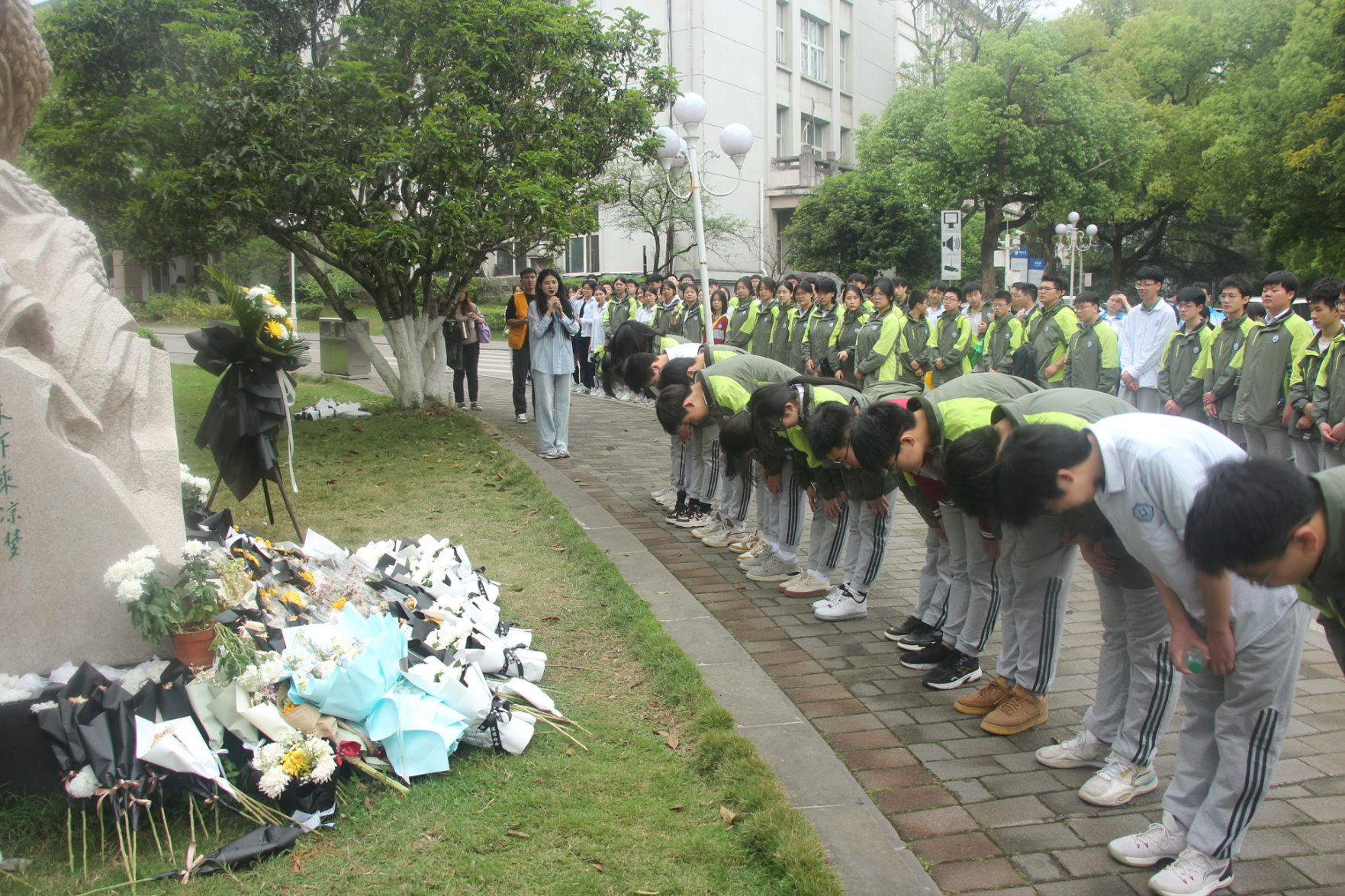 在袁隆平院士的雕塑前,学生们庄严列队,认真倾听袁隆平院士与西大的故事,各班代表依次献花,表达对这位科学巨匠、世界杂交水稻之父的崇高敬意。