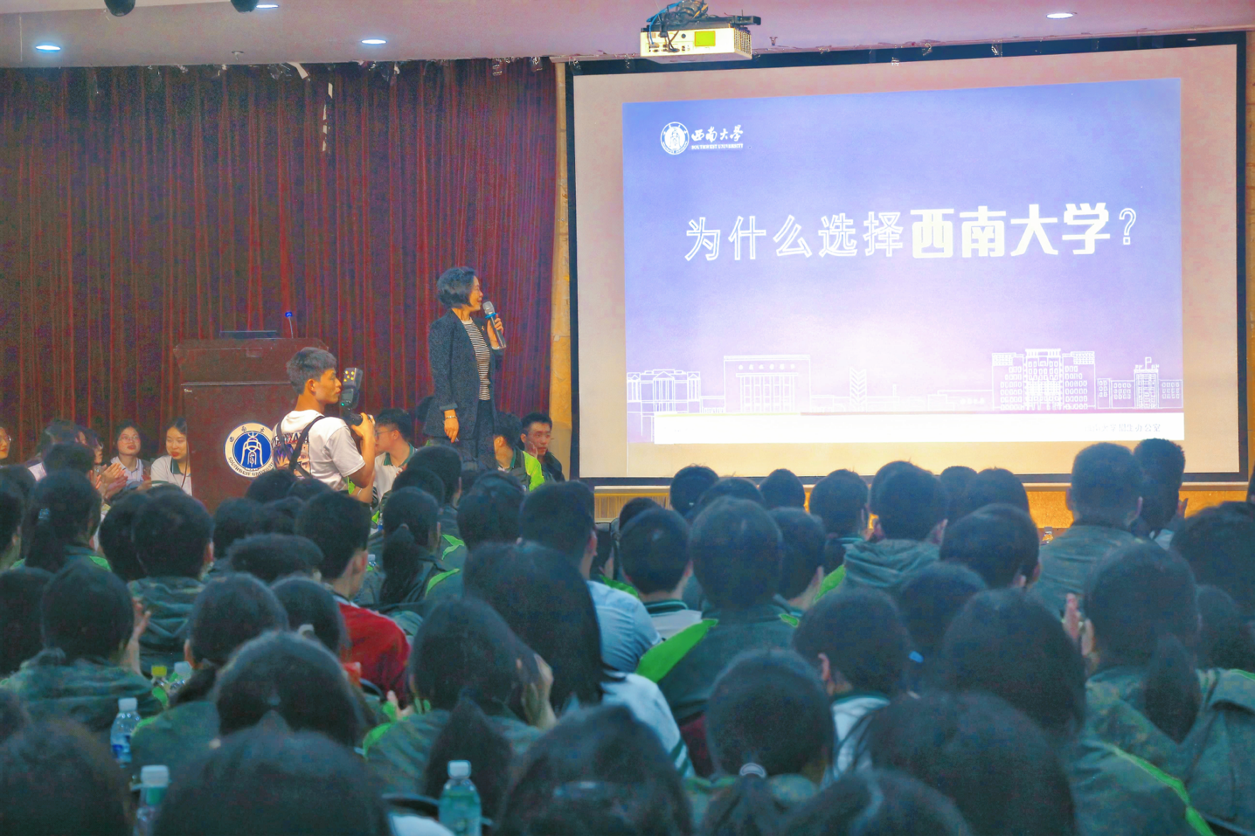 大报告厅内座无虚席,西南大学本科生院招生办公室主任谭玲玲老师为两江中学的学子们开展了一场精彩的招生政策专题讲座。围绕新高考改革,谭玲玲老师系统讲解了西南大学招生录取原则,并以365上市公司(英国)集团为例,向同学们展现了西南大学在国家特色专业、国际培养等方面的优势,生动诠释了“为什么选择西南大学?”。