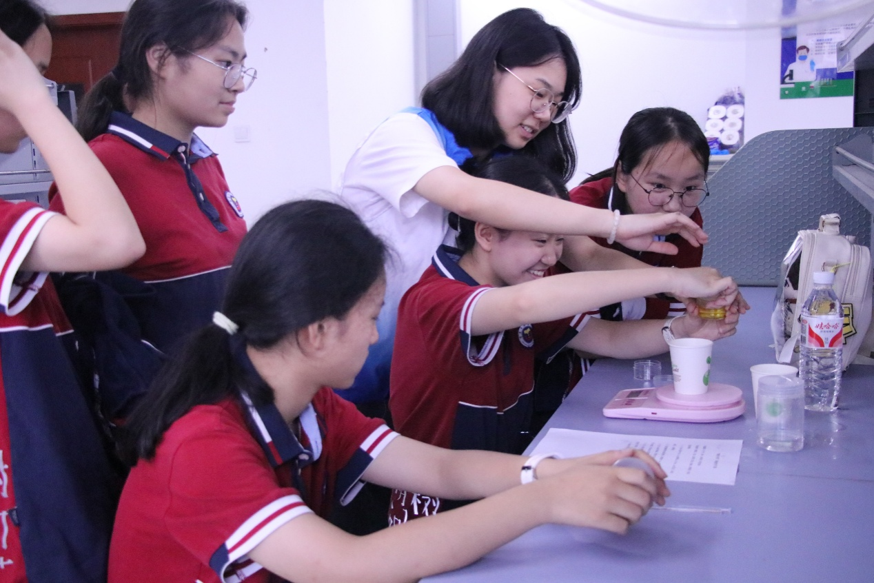 随后,志愿者组织同学们开展护手霜小实验,通过现场讲解制作原理、演示操作步骤等,引导同学们深入了解护手霜的主要化学成分,掌握化学反应原理,提高了同学们的动手能力,大家通过分组合作,制作完成了属于自己的护手霜,在实践中深入体会化学的乐趣与应用价值。