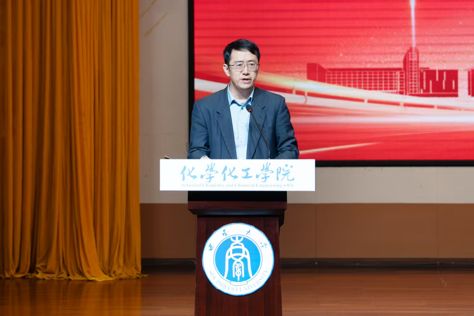 兄弟院校代表龚正君、教师代表杨霞、学生代表骆俊江、退休教师代表周鸣鸣、校友代表桂成伟先后登台分享心声。他们或表达祝福祝愿、或追忆师生情谊、或讲述奋斗故事、或诠释化院精神、或寄语未来发展,字里行间饱含对学院的深厚眷恋,生动展现了一代代化院人“团结奋进、求实创新”的精神传承,真挚表达了与学院同向同行、共赴新征程的坚定决心。