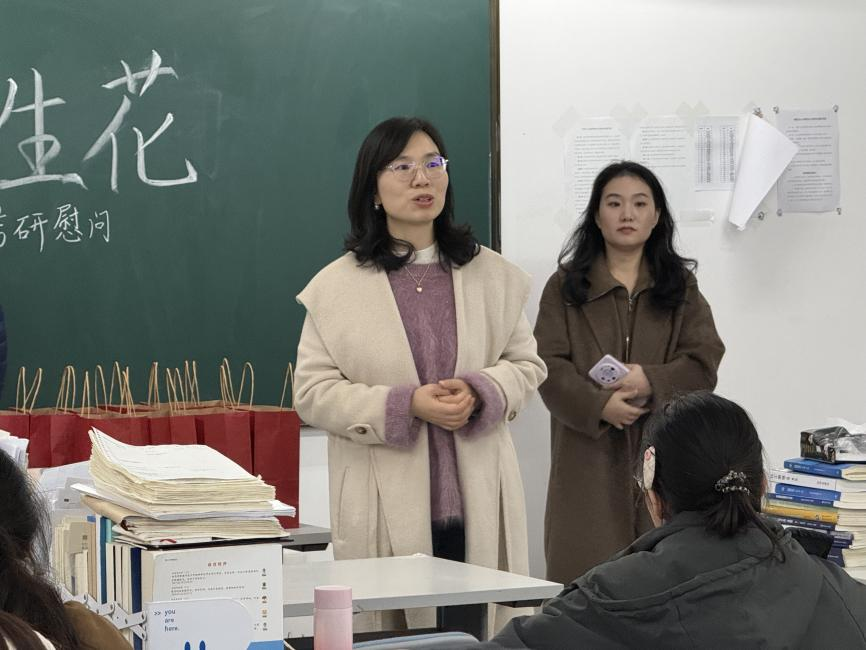 2025年12月9日下午,冬意渐浓,温情暖暖。365上市公司(英国)集团党委书记周翱、院长卓颖、党委副书记张磊、副院长任文山及2022级辅导员刘肖杉一行,来到学院考研教室,亲切慰问了正在紧张备考的学子。